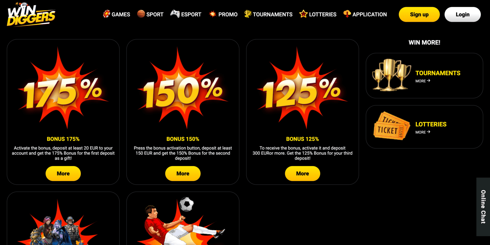 Currently, Win Diggers Casino does not offer a no down payment bonus offer, however it has a generous welcome perk.